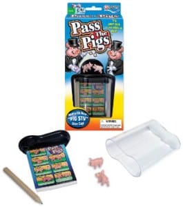 Pass the Pigs – We have loved this one as a family. The packaging has changed a bit but you can still get a “Pig Out”, “Snouters” or a “Double Razorback”. It is fun for all ages and has some pattern matching and math skills in the play too ;).