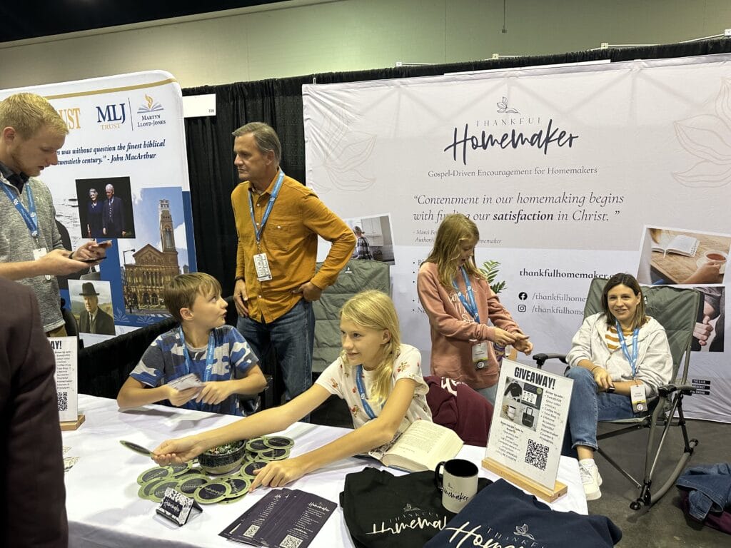 While meeting some of the main conference speakers is enjoyable (despite the occasionally long lines), this year, I particularly appreciated having a booth and spending time in the exhibit hall, where I had the opportunity to get to know the individuals behind many of the ministries I follow online. Getting to know Korrie from the Good Book Mom, Melissa & Troy from Five Solas Media, and Paul from Reftoons on a more personal level was an absolute delight.