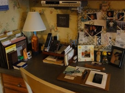 - A memo board keeps items upfront that may be needed but also holds special notes and pictures.