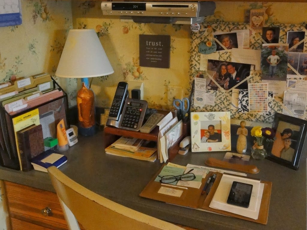 Personal: All monthly bills are paperless and auto-pay. Bank balances are checked as part of the morning routine each day. Permanent papers (life documents) are in the safe. I have a drawer for holding temporary papers until I scan/shred.