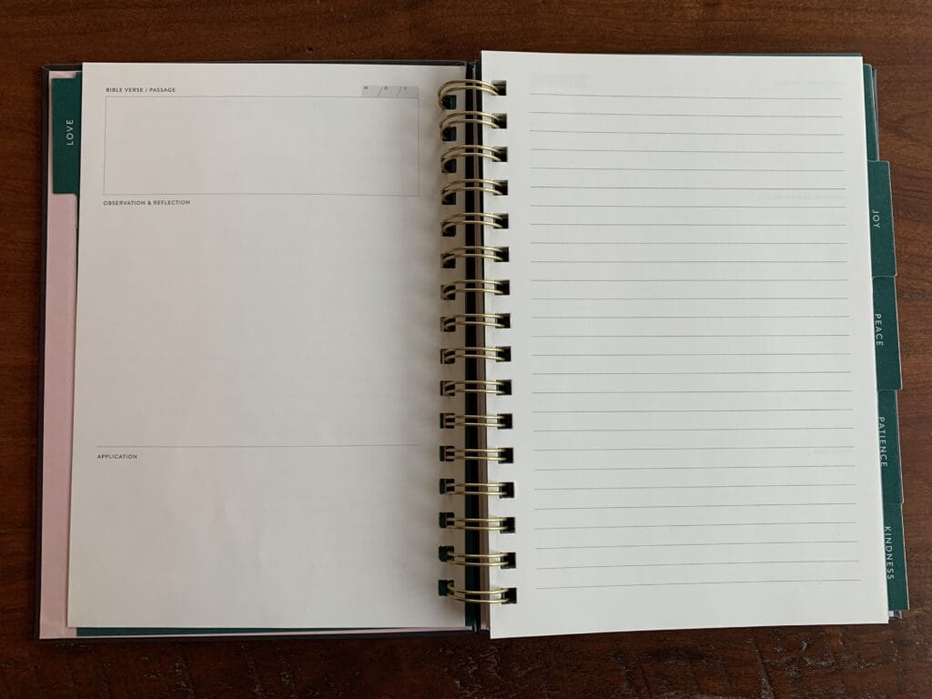 The Quiet Time Companion from Wholehearted is such a beautiful and well-equipped book to guide you in your time with the Lord. There are sections for your prayer lists, prayer requests, memory verses, a bible reading plan, and your daily time with the Lord with guided sections.